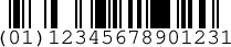 GS1 DataBar is a family of barcodes from GS1. Formerly known as Reduced Space Symbology (RSS-14). Valid characters: Numeric Length: 14 |
